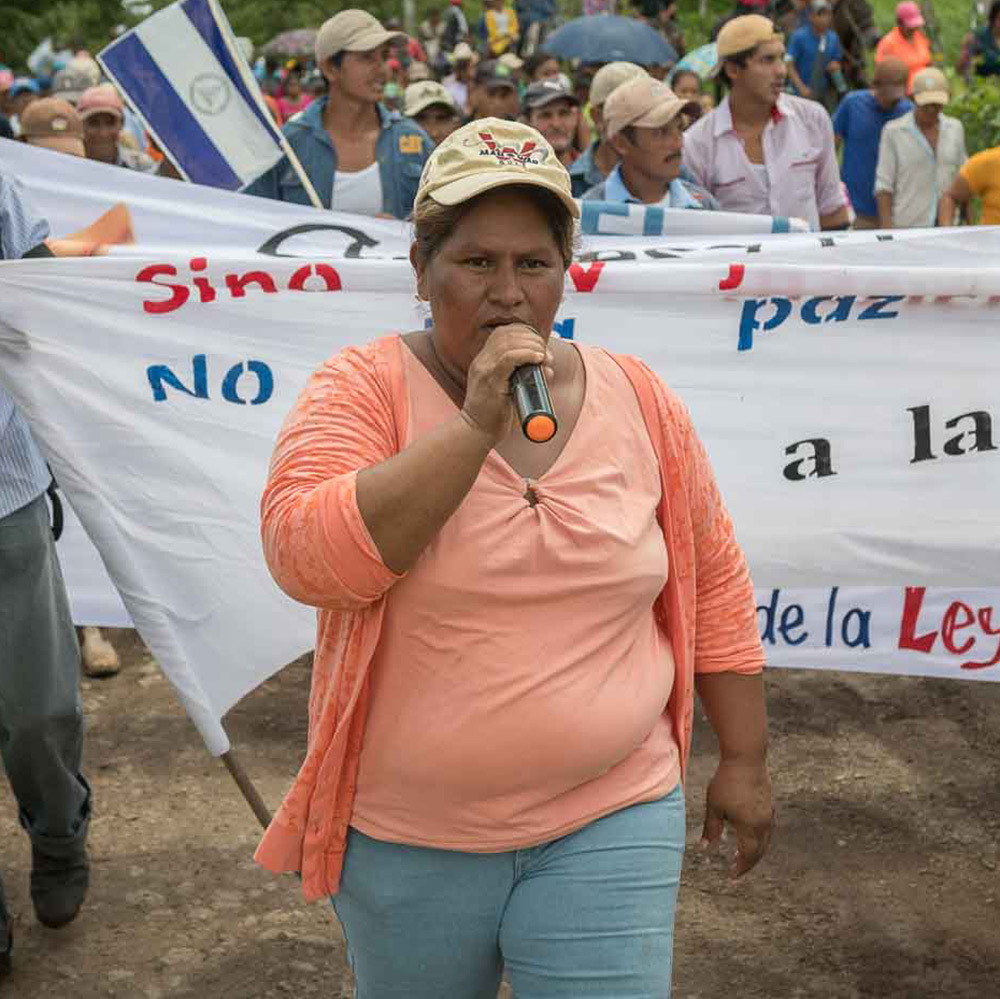 Ramirez has been critical of government failings in infrastructure, such as roads, that have severe economic repercussions on poor farming communities. Francisca is a vital part of educating farming communities and other working-class groups of their rights across various regions of Nicaragua. In 2014 she began her fight against a controversial law that was signed by the government allowing HKND Group, a Chinese developer, to build a shipping canal through the country. The intercontinental shipping canal would displace a considerable amount of farming and peasant families, forcing them from to give up long-held lands and resettle elsewhere.