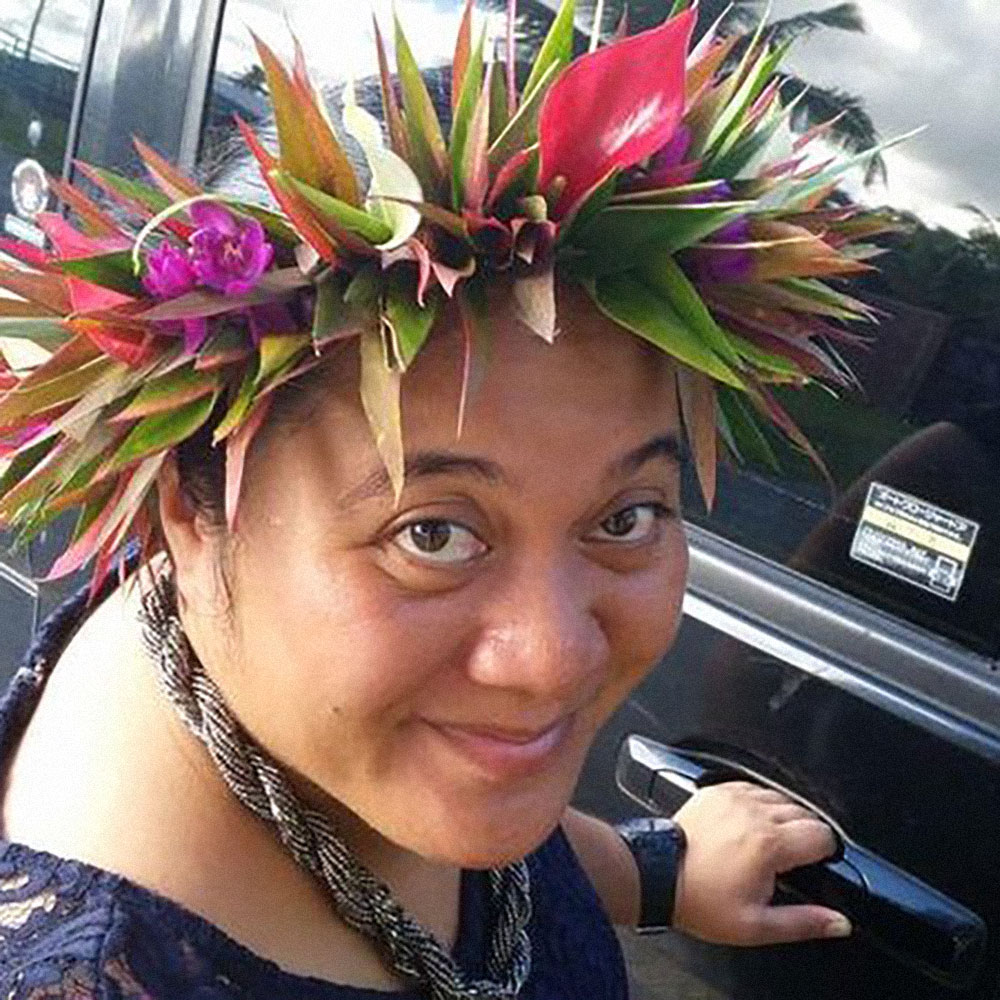This illustration of Inangaro Vakaafi was Inspired by Hiapo, a form of storytelling through tapestry that is unique to Niue. Included in the country's native flower, Fiti Pua, both big and small, to represent the women and children she advocates for.
