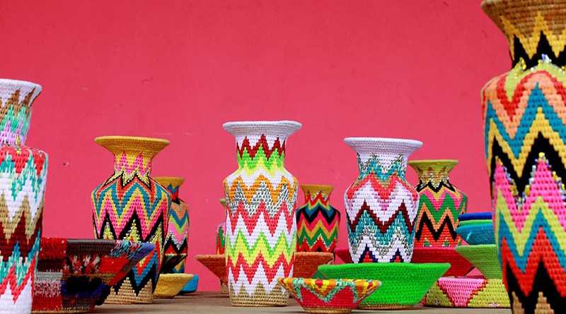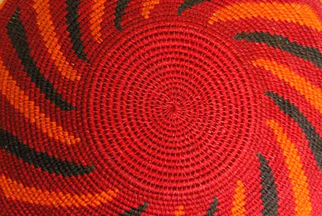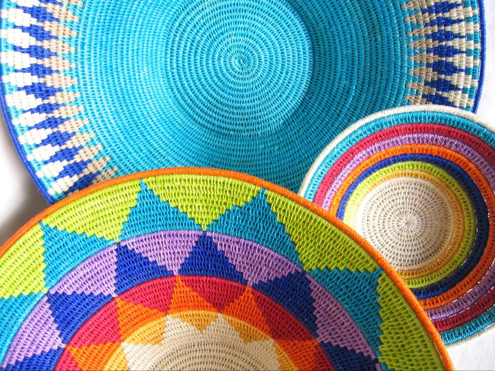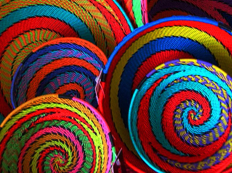 Swazi art is known for it’s various and vibrant handicrafts, with rich traditions in grass, basket, and hair weaving, jewelry making, batiks, as well as, wood and stone carving. Maxwell Dlamini’s portrait begins with the warm, bright colors and sharp patterns of these tactile crafts and interprets them in a state of slight deconstruction and disarray from their typical sound geometry.