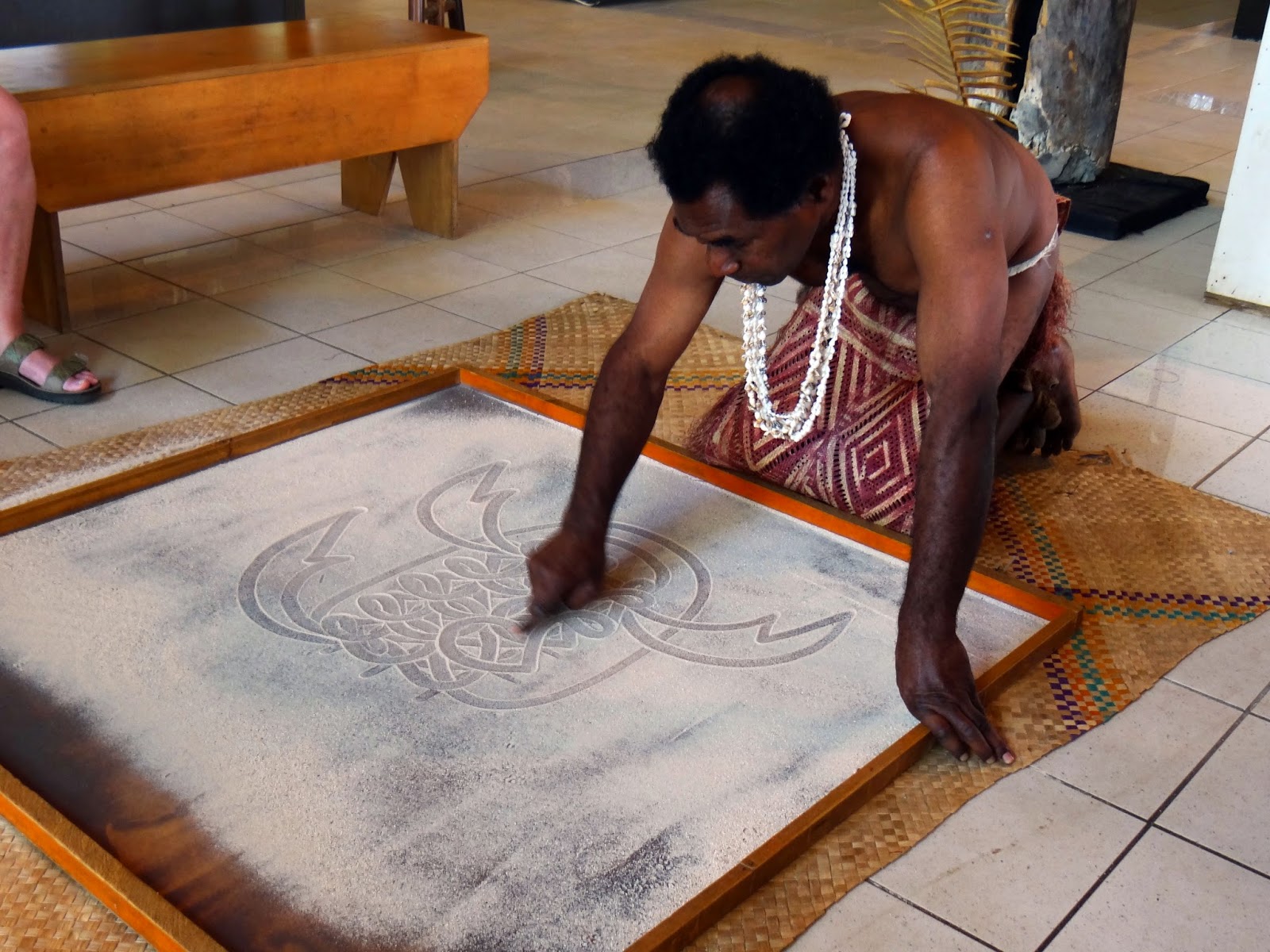 The art of Vanuatu is rooted in it’s traditional practices which remain strong despite over a century of colonial influence. Sand painting is very prevalent among ni-Vanuatu people and is an art form recognized by UNESCO as a Masterpiece of the Oral and Intangible Heritage of Humanity. The ni-Vanuatu artist will compose expressive and linear compositions in the sand with a single finger.