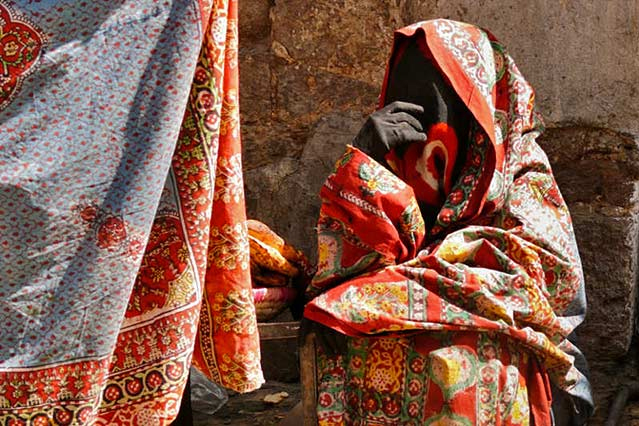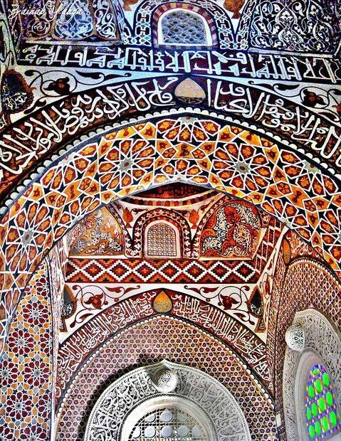 Tawakkol Karman’s portrait is inspired by the mosaic patterns found in the many mosques of Yemen. The intricacy of these details also echo the ornate decorations found on Janbiya, curved daggers worn by Yemeni men. The colors of this portrait were derived from the illustrious palettes displayed on traditional hijabs.